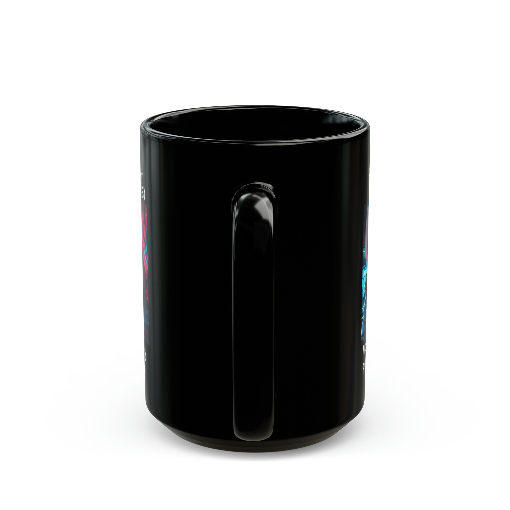 Forged from 100% black ceramic, this mug comes in two battle-ready sizes: the agile 11oz for quick sips and the stalwart 15oz for long engagements. The glossy finish and robust ceramic construction echo the sleekness and resilience of a well-fortified server.